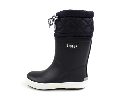 Vintergummistøvle i mørkeblå (marine blanc) fra Aigle med varmt 100% polyester foer. Skaftet har quiltet overdel med snøre. Støvlen er oplagt som supplement til almindelige vinterstøvler.