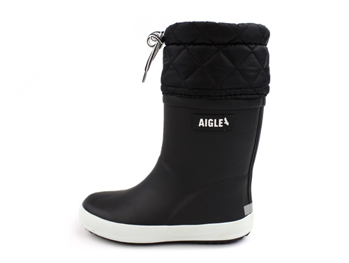 Vintergummistøvle i sort (noir blanc) fra Aigle med varmt 100% polyester foer. Skaftet har quiltet overdel med snøre. Støvlen er oplagt som supplement til almindelige vinterstøvler.