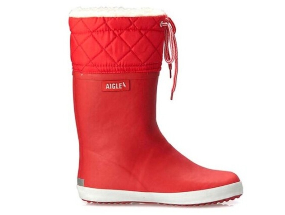Vintergummistøvle i rød (rouge blanc) fra Aigle med varmt 100% polyester foer. Skaftet har quiltet overdel med snøre. Støvlen er oplagt som supplement til almindelige vinterstøvler.