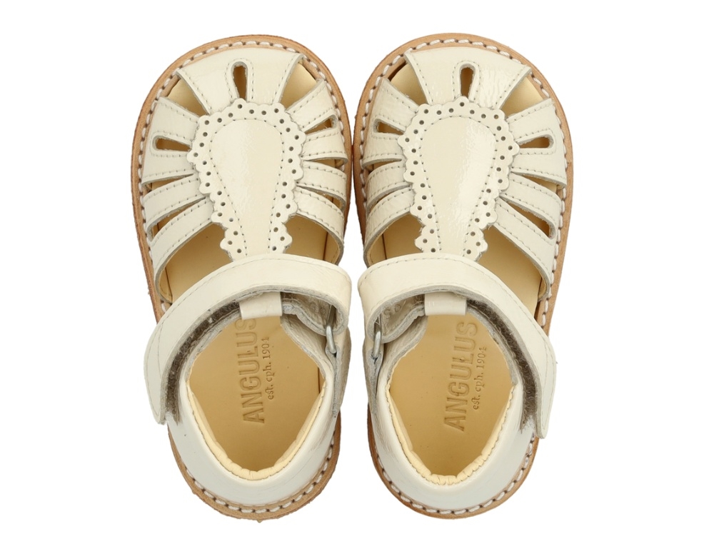Angulus sandal buttermilk med velcro og broderi anglaise