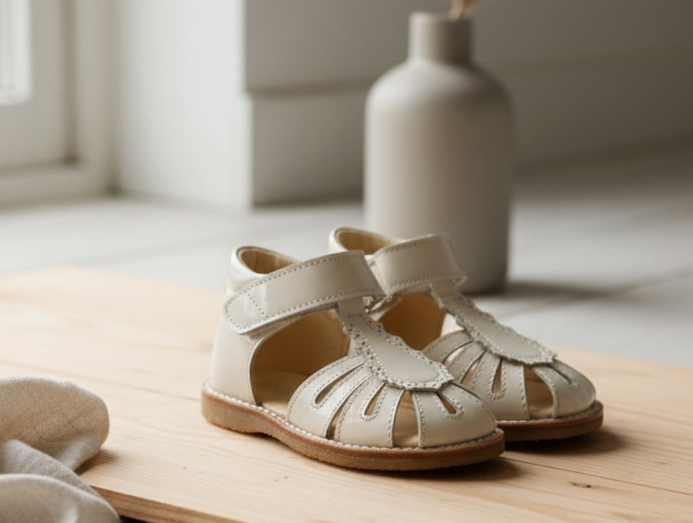 Angulus begynder sandal i råhvid med broderi anglaise og smal pasform