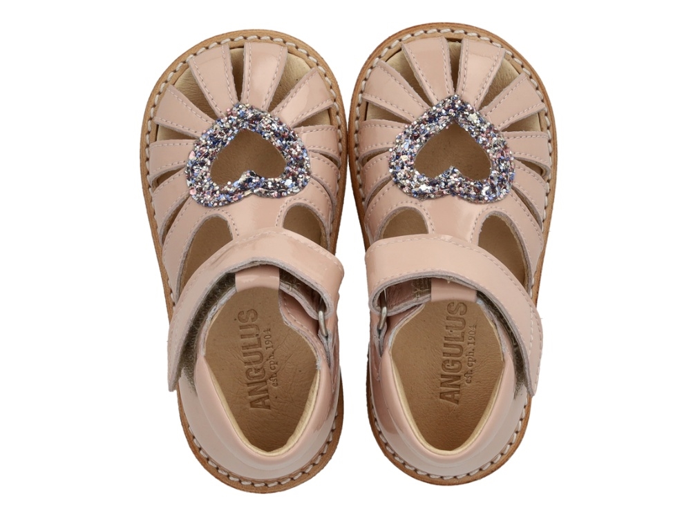 Angulus begynder sandal i rosa med glitterhjerte og lak
