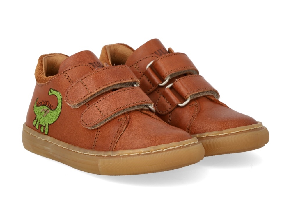 Angulus begynder sneaker i cognac med dinobroderi og velcrolukning