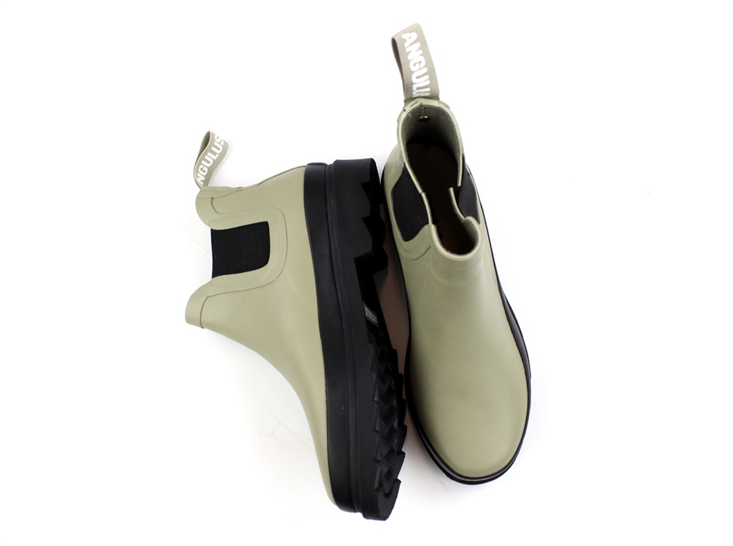 Beige/grøn kort gummistøvle fra Angulus til store børn og voksne.