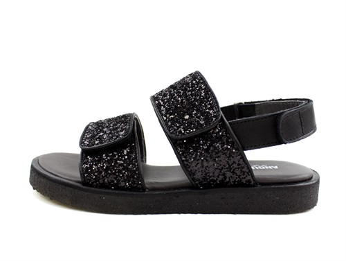 Angulus sort glitter sandal med velcro