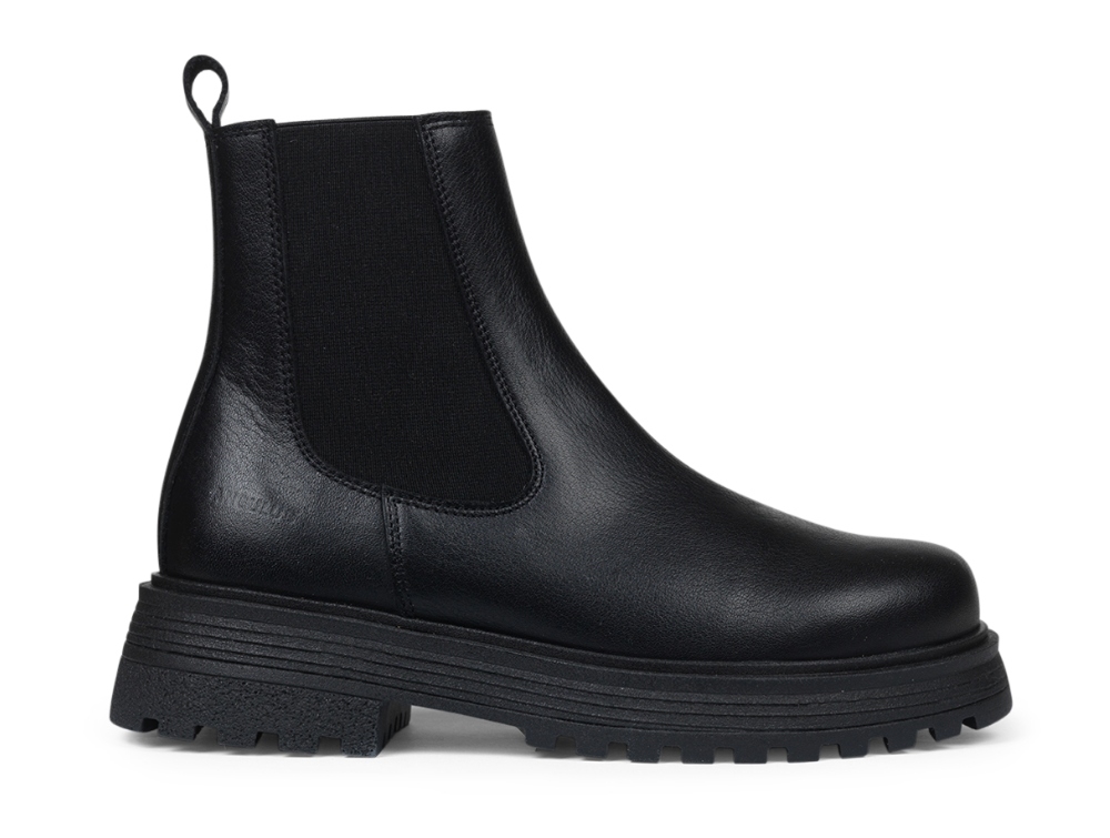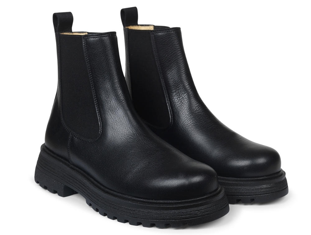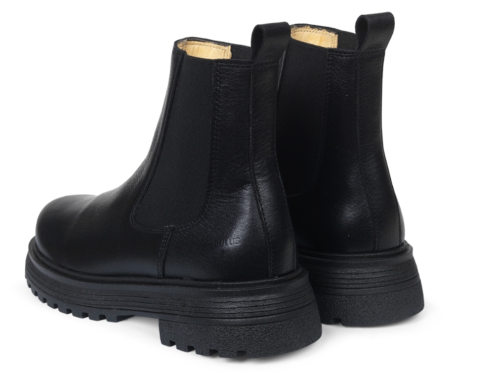 Angulus Chelsea støvle sort skind med chunky tracksål