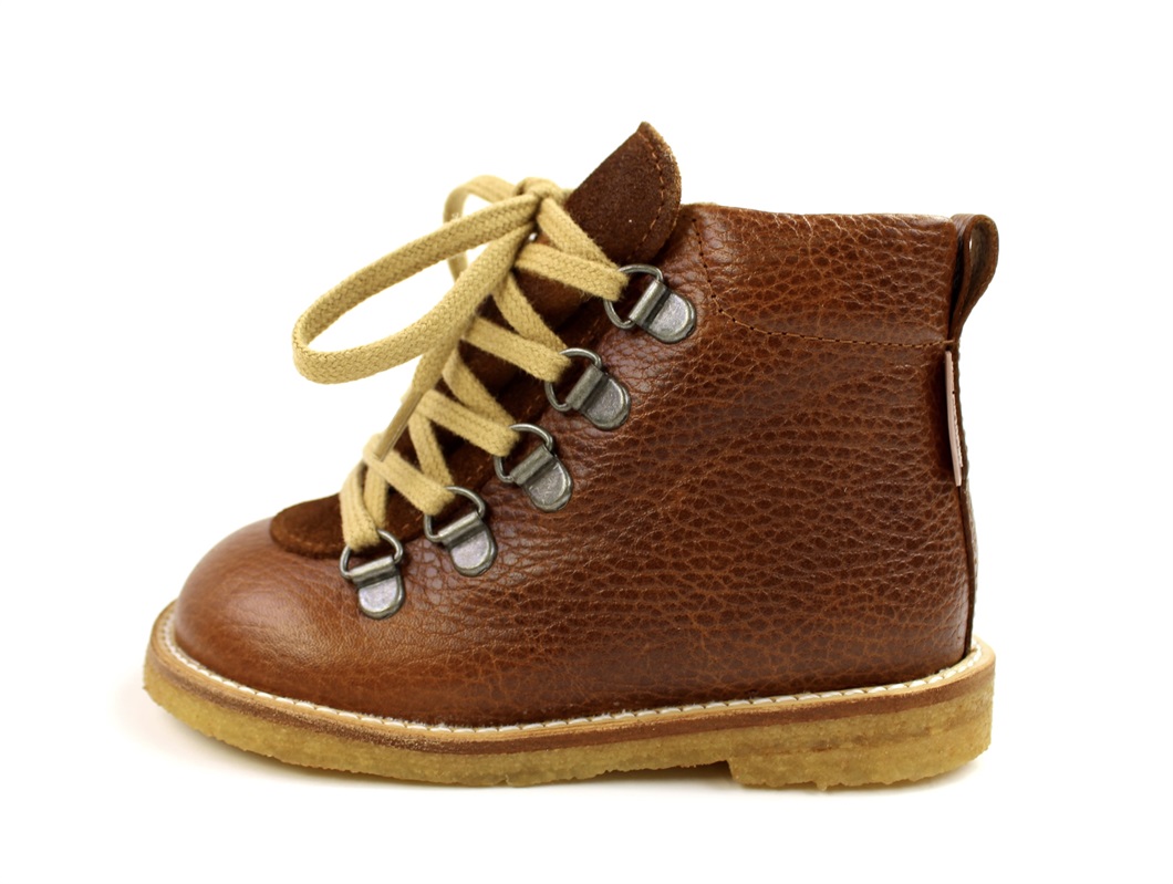 Kort cognacfarvet lædervinterstøvle fra Angulus.