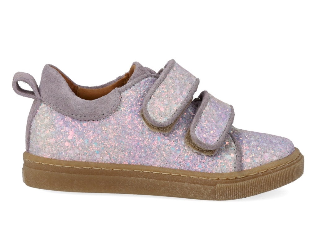Angulus glitter sneaker i lilla glitter med velcro, ruskindskanter og fast hælkappe