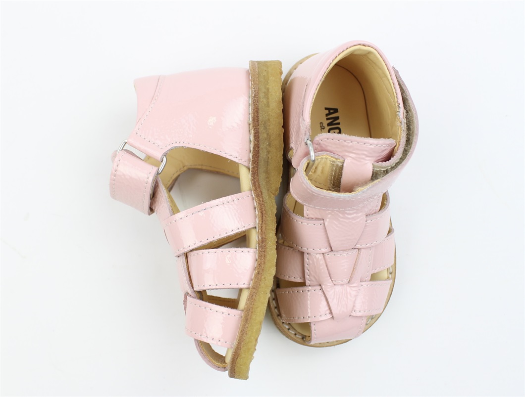 Sandalen har en lukket snude og en fast høj hælkappe med god støtte.