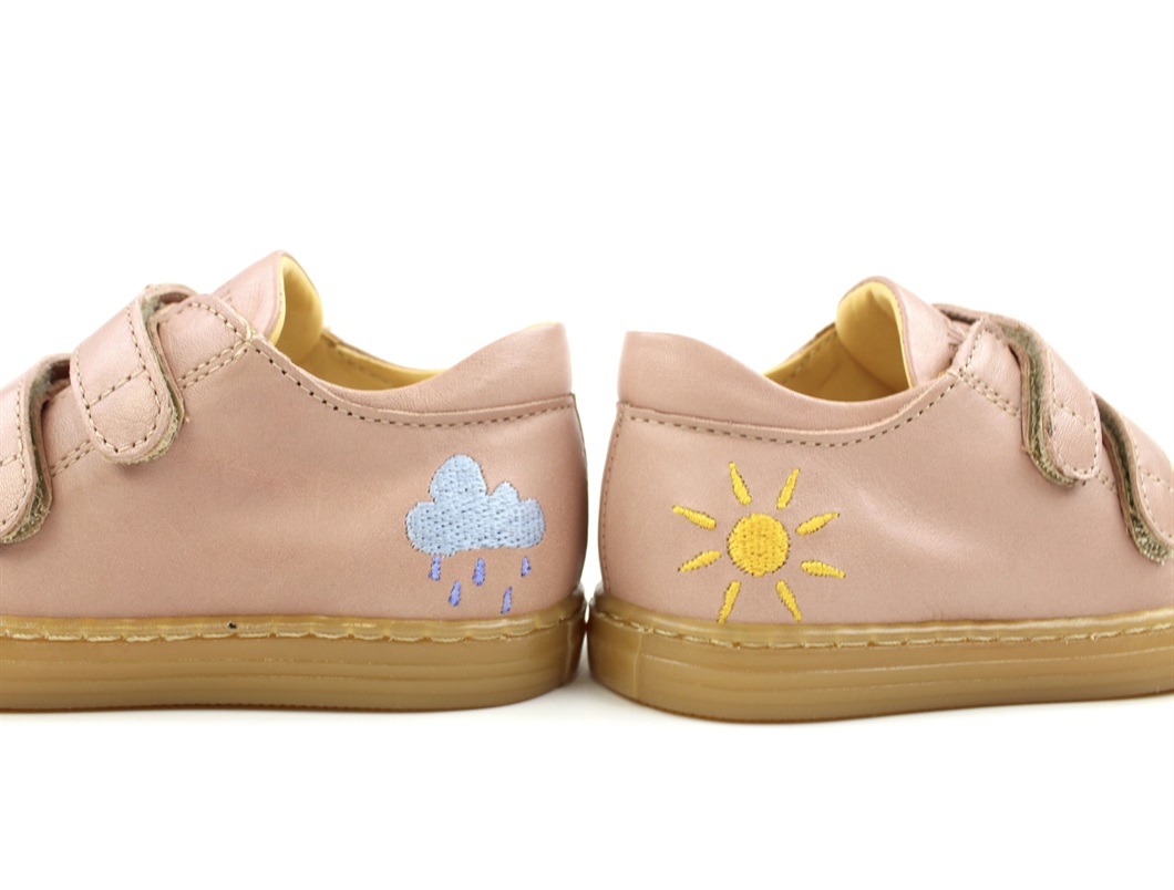 Sko i farven rose med broderi på ydersiden fra Angulus.