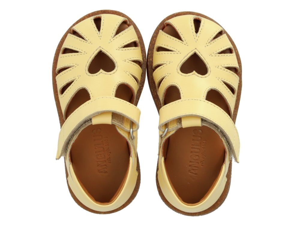 Angulus sandal i læder i gul (mellow yellow) med udskåret hjerte.