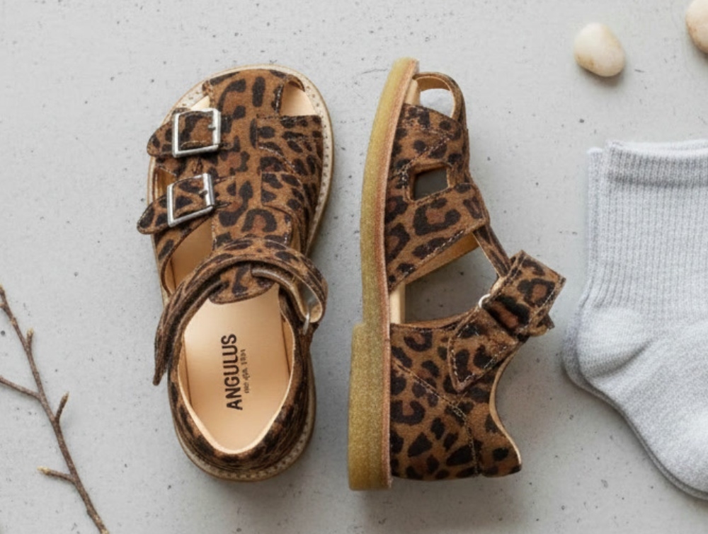 Angulus sandal leopard med spænder og velcro