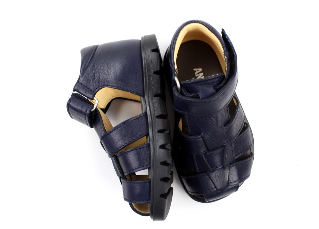 Navyfarvet lædersandal fra Angulus. Sandalen er velegnet til medium og let brede fødder.