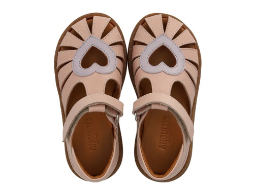 Angulus sandal i rosa (rosebud) læder med kontrastfarvet lilla hjerte.