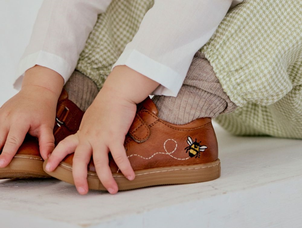 Skoen har justerbare velcroremme for en nem lukning samt et præget logo på tungen. Den faste hælkappe med polstret krave sikrer ekstra komfort, stabilitet og støtte, mens det kromfri læderfoer og den vatterede indersål er blød og behagelig for fødderne. Den lette, bløde og fleksible gummisål understøtter fodens naturlige bevægelser.