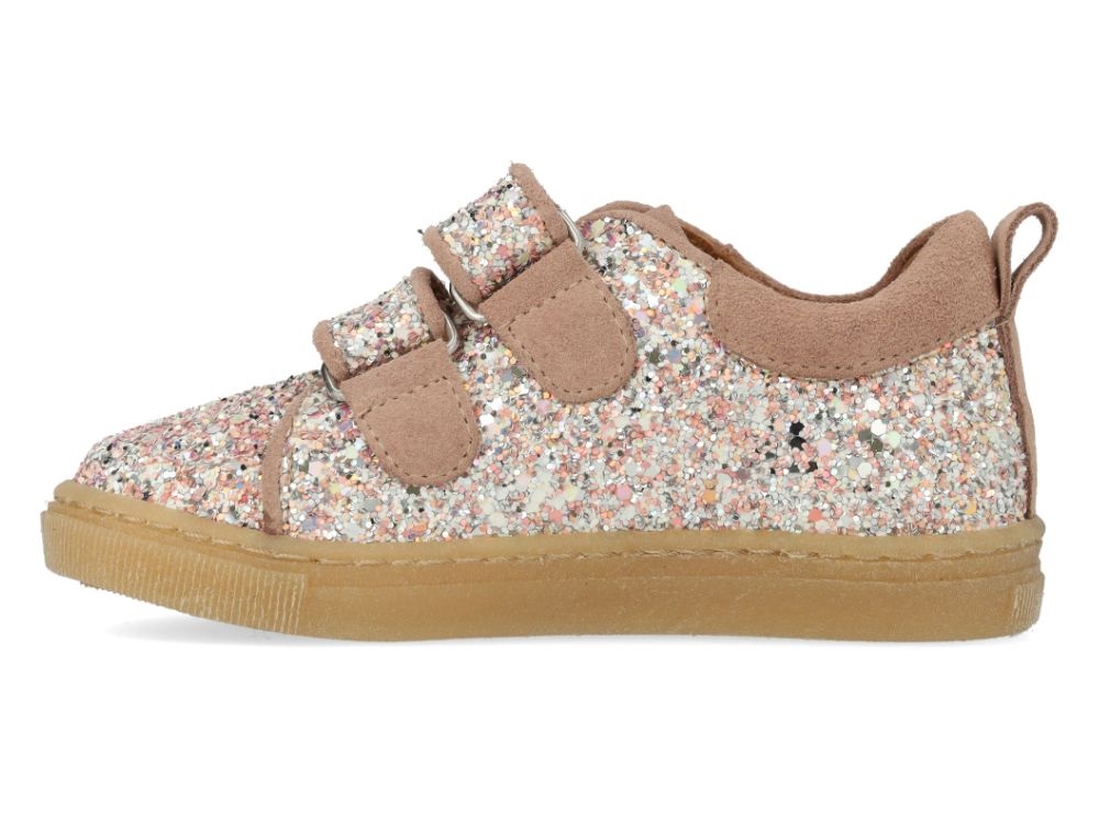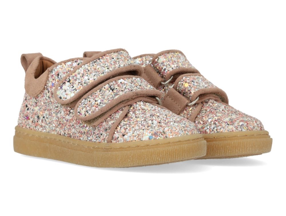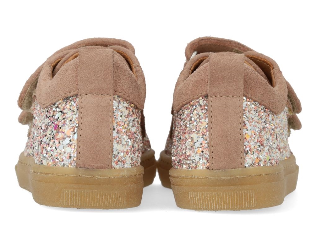 Glitter-sneaker med ruskindskanter og to justerbare velcroremme.