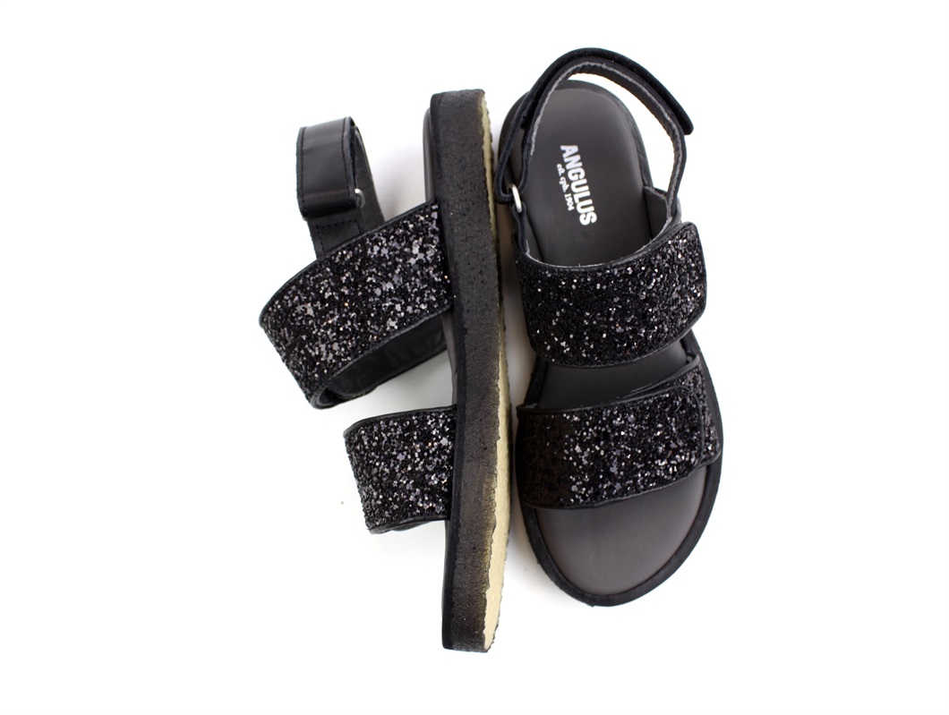 Angulus sort glitter sandal med velcroAngulus sort glitter sandal med velcro