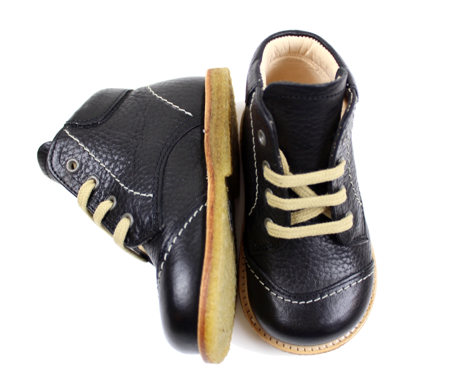 Skoen har snørebånd og kan derfor tilpasses rigtig fint til fødderne.