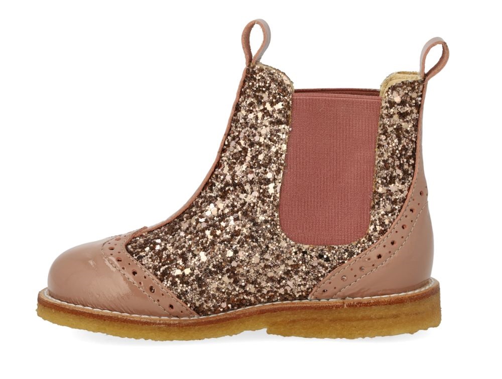 Angulus støvletter med lak og glitter i rosabrun nuance (clay).