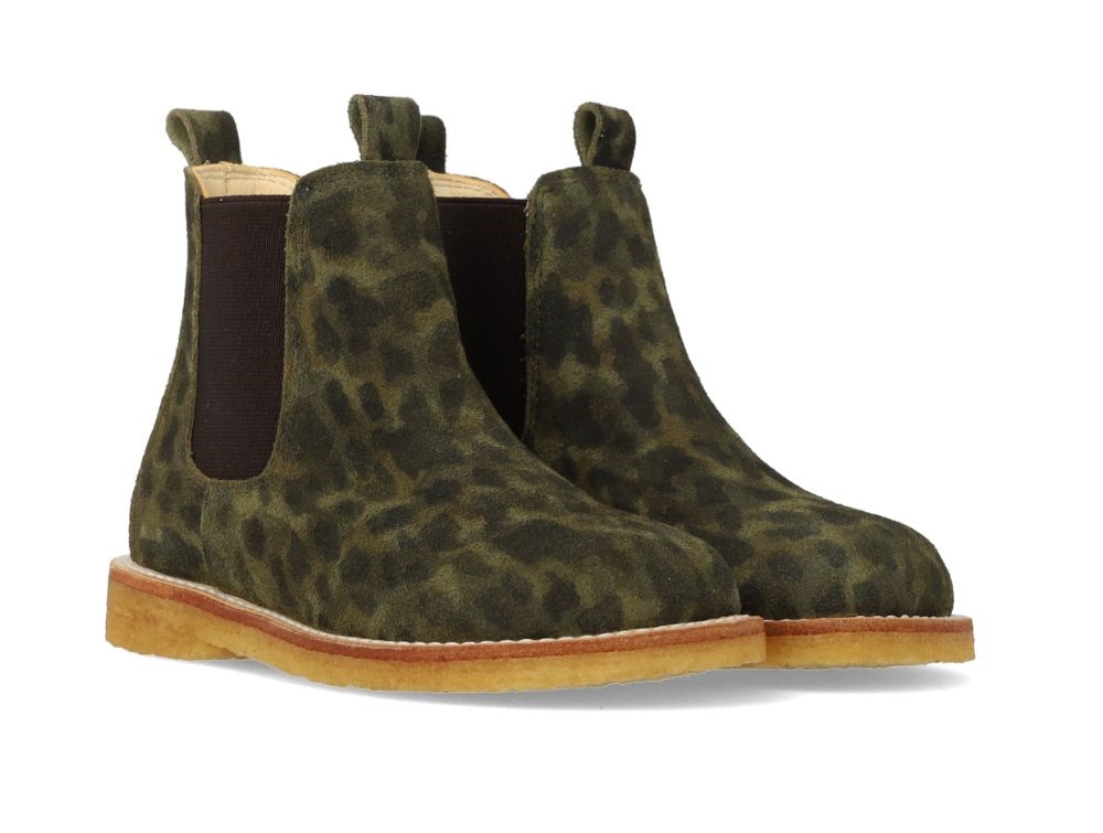 Klassiske ankelstøvletter i grøn med printet "marshland" fra Angulus.