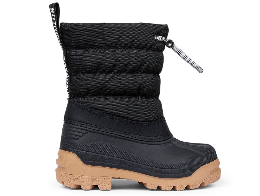 Modellen har en sporty logostrop bagtil, snørelukning øverst og en skridsikker gummisål med groft trackmønster, der giver godt greb på sne og is. Støvlen er desuden PVC-fri.
