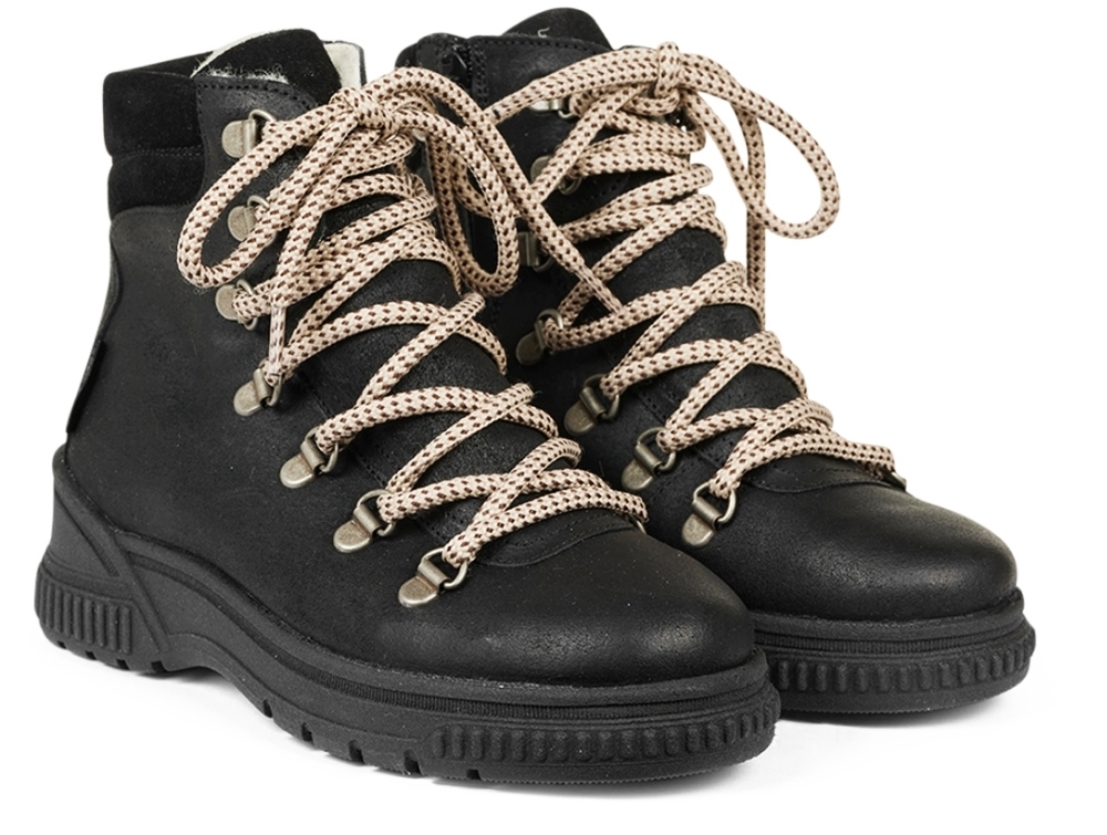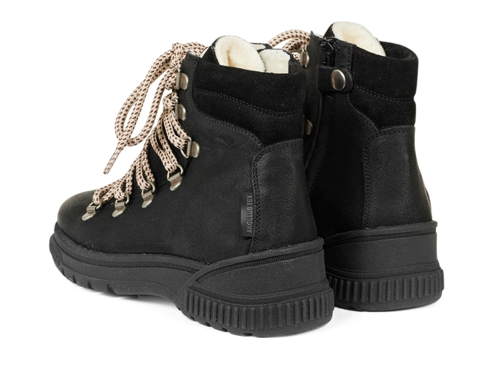 TEX-snørestøvle i sort læder fra Angulus. Støvlen har et design med tofarvede snørebånd, lynlåslukning i siden og en chunky gummisål, der giver stabilitet og komfort. Med uldfoer og TEX-membran er den udviklet til at hjælpe med at holde fødder varme og tørre i vintermånederne.