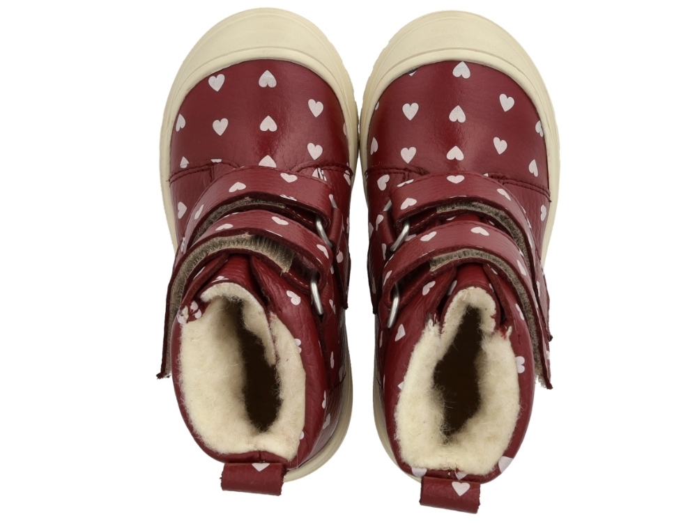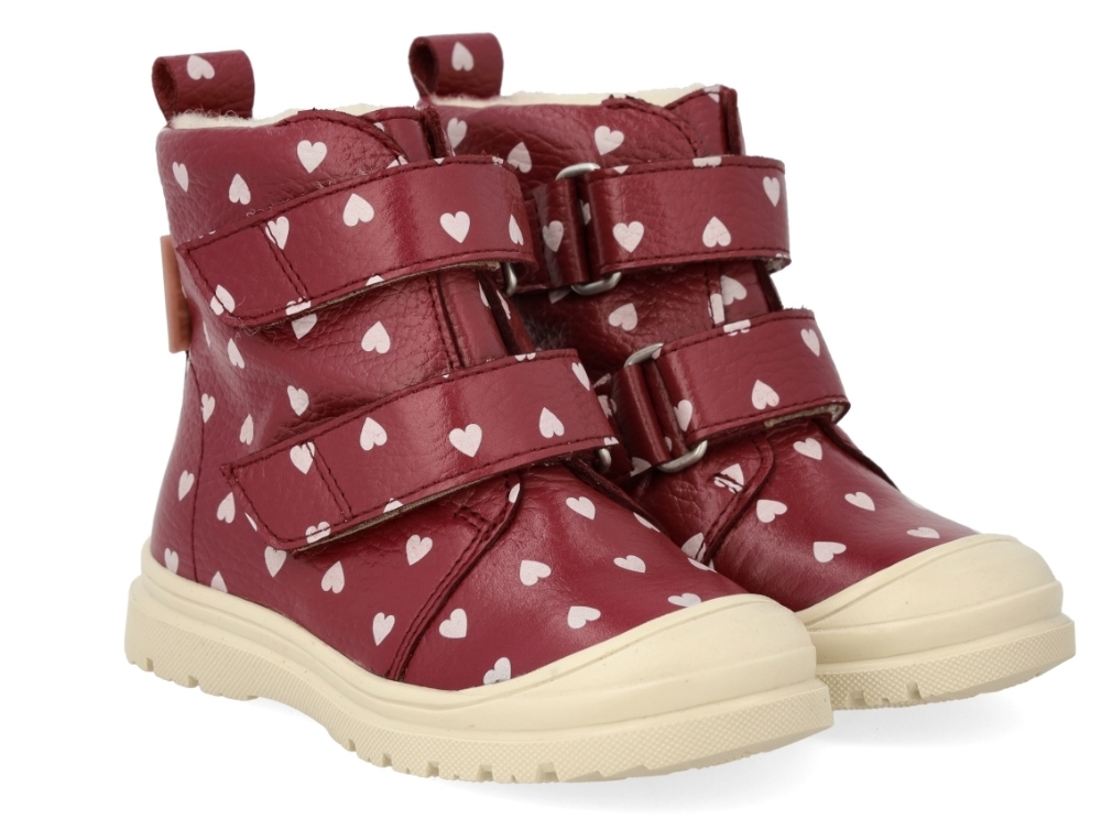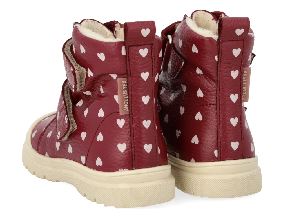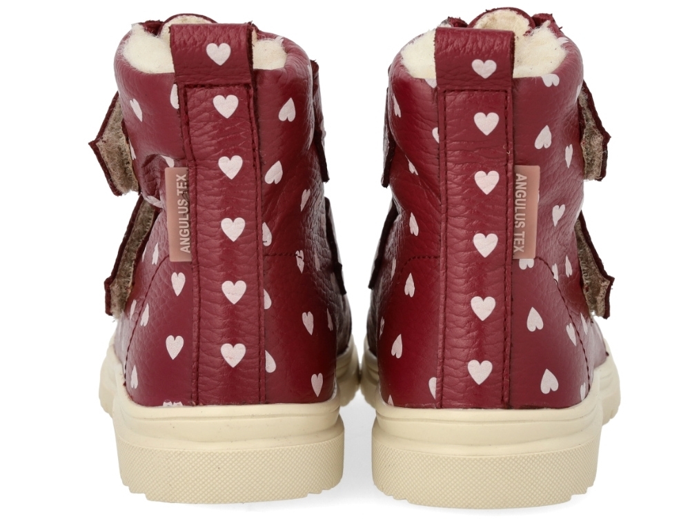 Angulus TEX støvle rød bær med hjerteprint og uldfoer