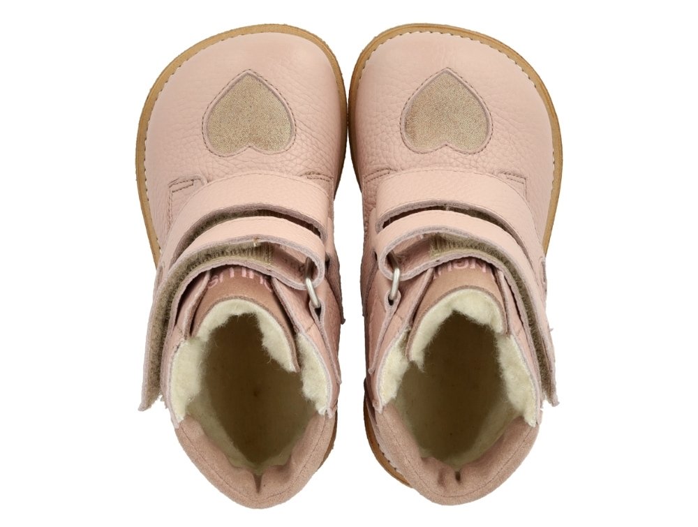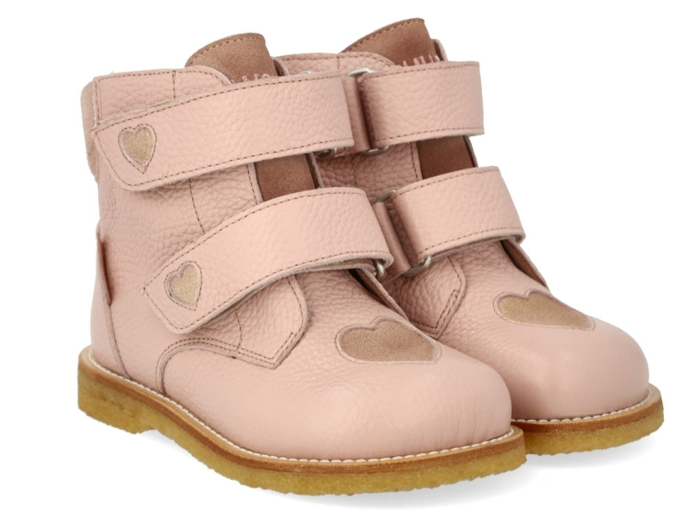 Angulus TEX støvle rose med guldhjerter og uldfoer