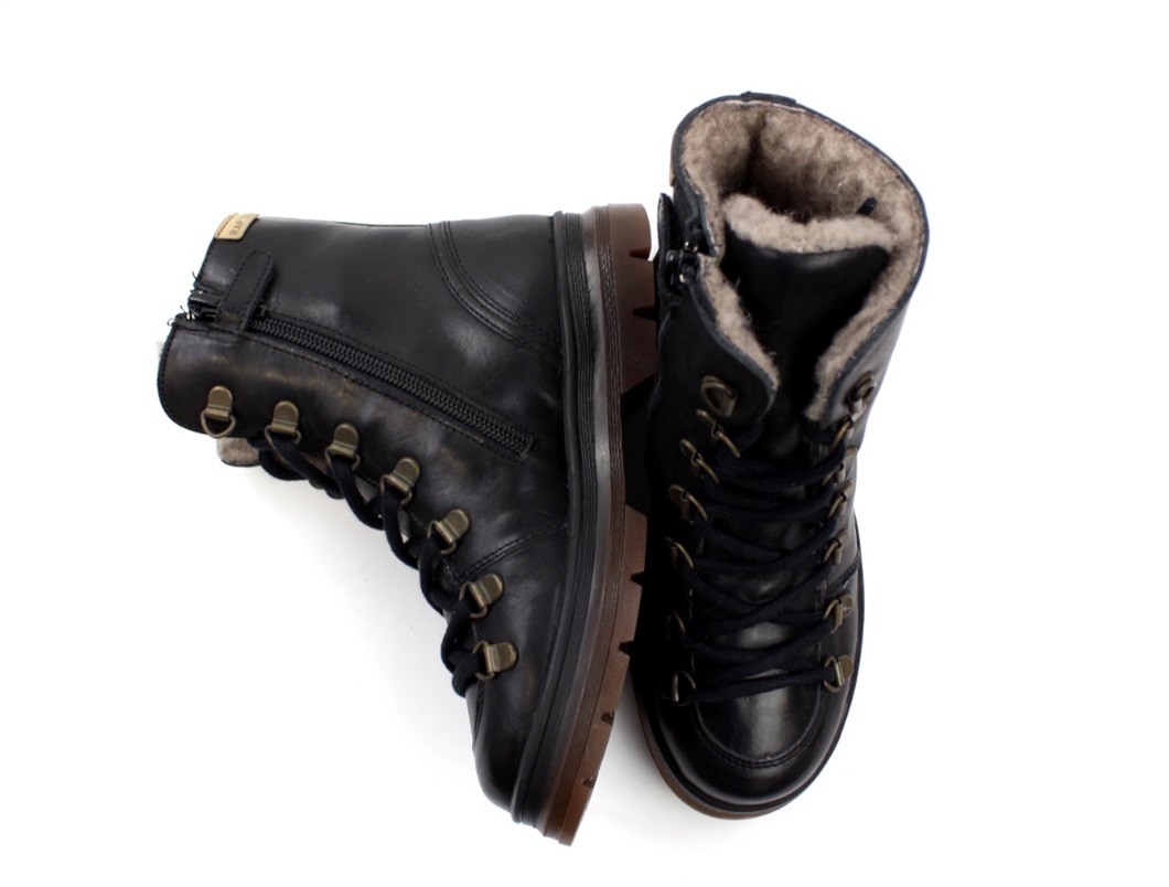 Sort lædervinterstøvle fra Arauto RAP med ægte uldfoer og TEX-membran.