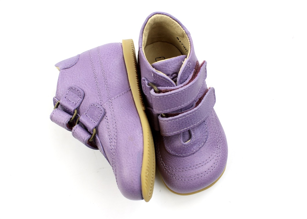 Lavendelfarvet begyndersko i læder fra Arauto RAP. Skoene lukkes med to velcroremme. Solid stærk hælkappe.