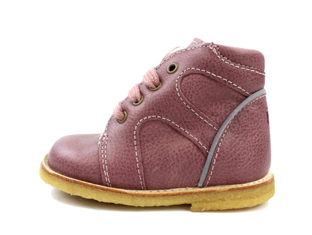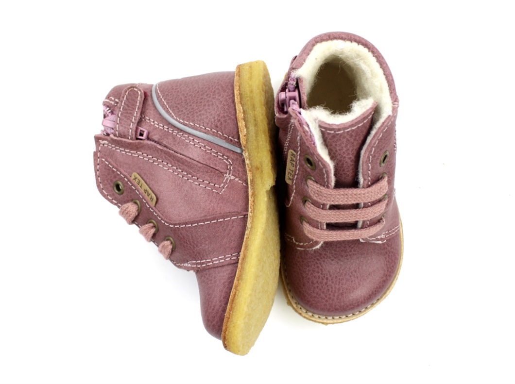 Vinterstøvle i læder i farven old rose fra Arauto RAP. Støvlen har snørebånd og lynlås, varmt uldfoer og vandafvisende TEX-membran.