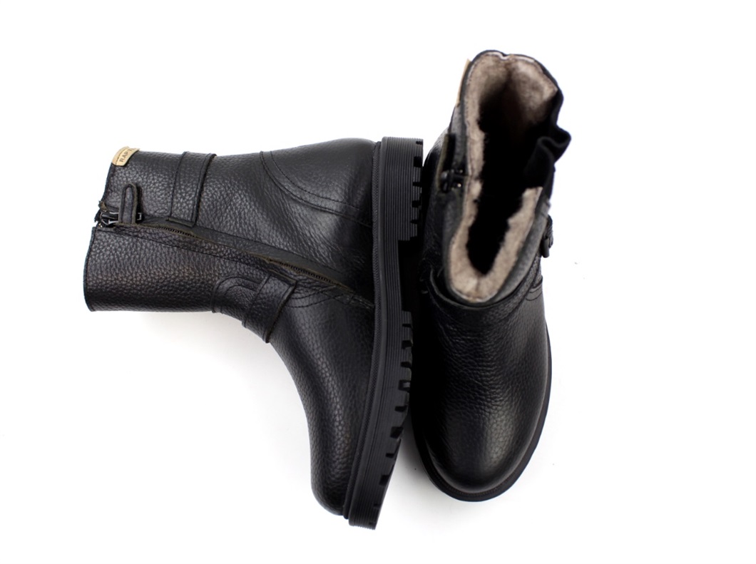 Sort lædervinterstøvle fra Arauto RAP med ægte uldfoer og TEX-membran. TEX membranen er vandtæt, vindtæt og samtidig stadig åndbar.