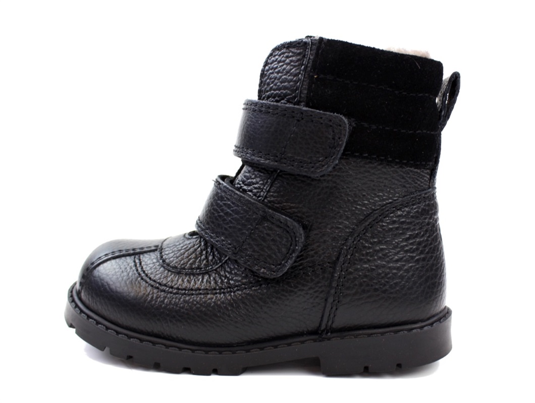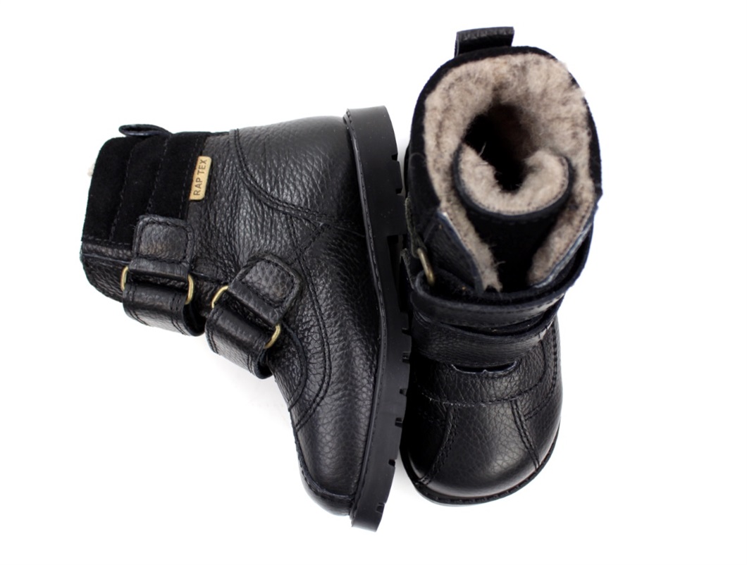 Sorte lædervinterstøvler fra Arauto RAP med ægte uldfoer og TEX-membran. TEX membranen er vandtæt, vindtæt og samtidig stadig åndbar.