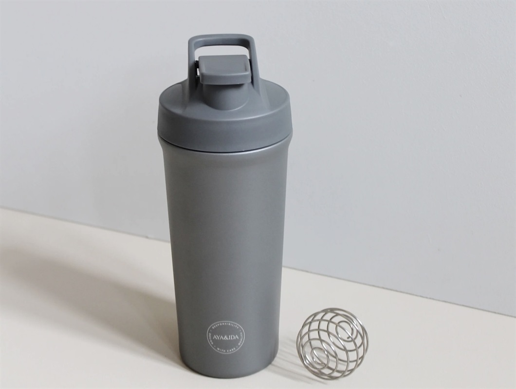 AYA&IDA Shaker Bottle er en praktisk sportsdrikkeflaske designet til at imødekomme dine behov under træningen, hvad enten det er som vandflaske eller protein shaker. Flasken er fremstillet af rustfrit stål med et låg i polypropylen plast. Flasken er designet til hurtig brug, uden behov for termofunktion, hvilket gør den perfekt til en hurtig shake inden eller efter din træning. Den medfølgende rustfrie stålbold sørger for, at proteinpulveret blandes hurtigt og effektivt. Flasken har en stor drikkeåbning, som gør det nemt at indtage store mængder væske på kort tid.