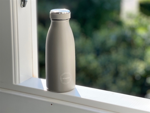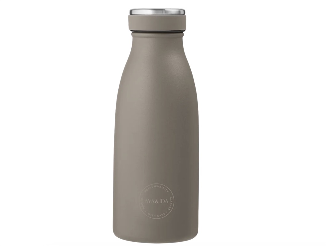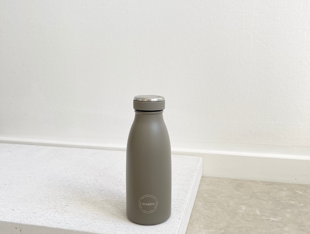Super lækker 350ml vandflaske i rustfrit stål i farven driftwood fra AYA&IDA.