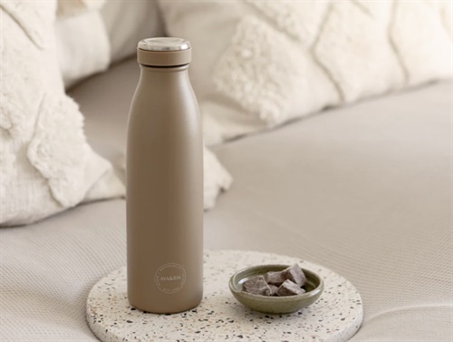 Super lækker 500ml vandflaske i rustfrit stål i farven dusty brown fra AYA&IDA.
