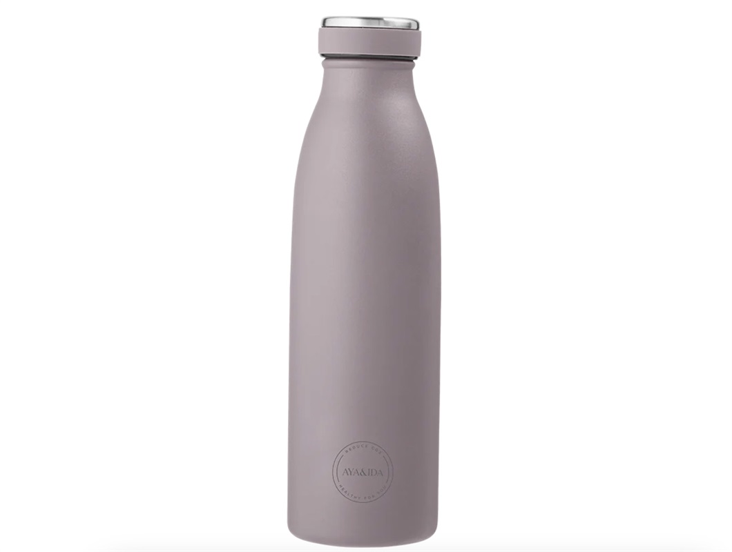 Super lækker 500ml vandflaske i rustfrit stål i farven lavender fra AYA&IDA.