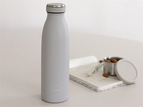 Super lækker 500ml vandflaske i rustfrit stål i farven light grey fra AYA&IDA.