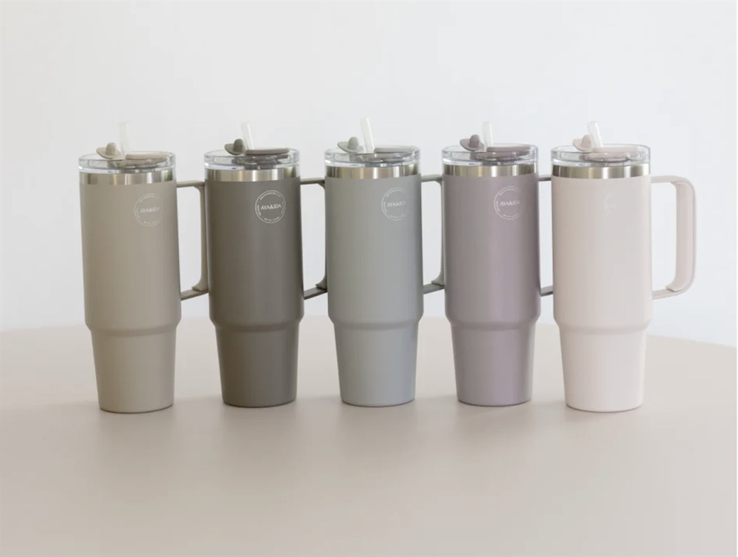 AYA&IDA light grey termokop med sugerør 885ml