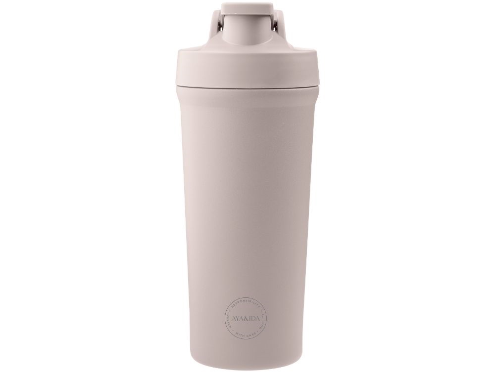AYA&IDA Shaker Bottle er en praktisk sportsdrikkeflaske designet til at imødekomme dine behov under træningen, hvad enten det er som vandflaske eller protein shaker. Flasken er fremstillet af rustfrit stål med et låg i polypropylen plast. Flasken er designet til hurtig brug, uden behov for termofunktion, hvilket gør den perfekt til en hurtig shake inden eller efter din træning.