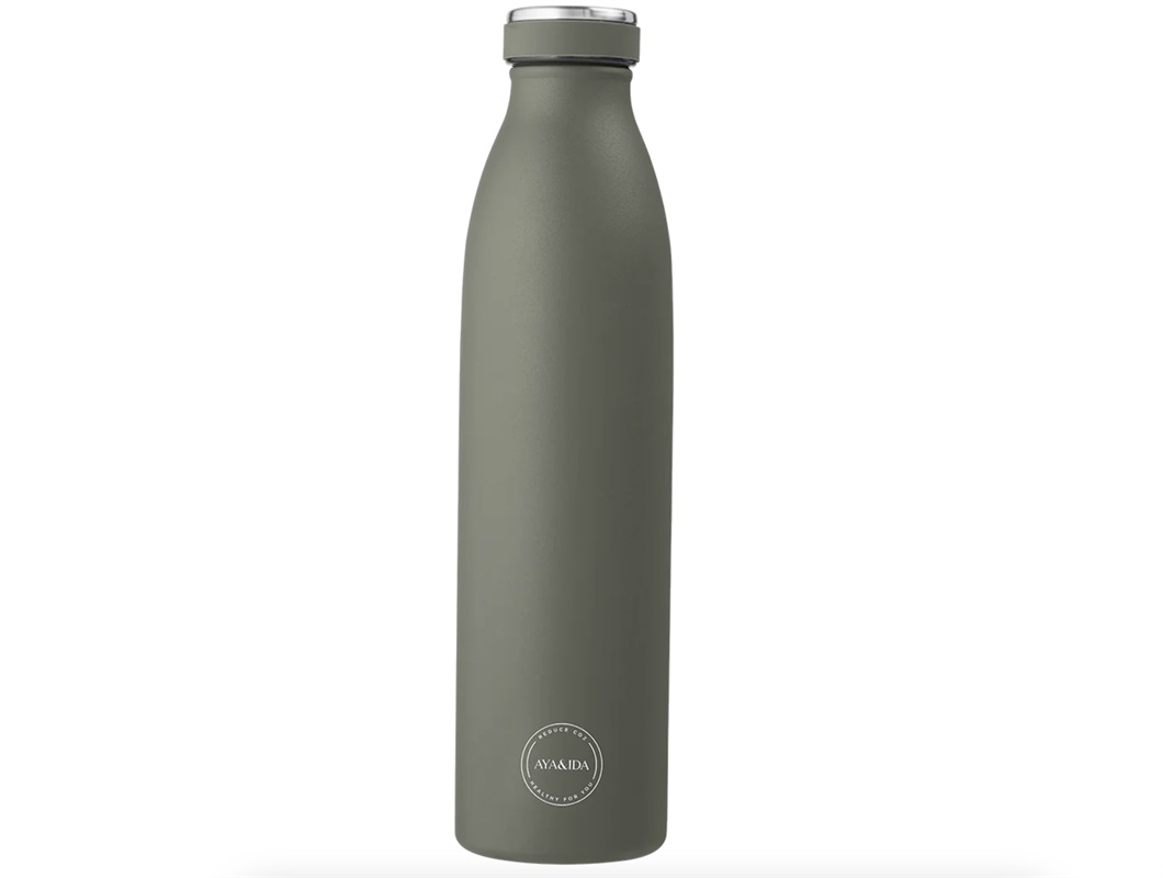 Super lækker 750ml vandflaske i rustfrit stål i farven tropical green fra AYA&IDA.