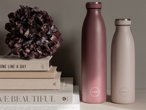 Super lækker 750ml vandflaske i rustfrit stål i farven wild blackberry fra AYA&IDA.