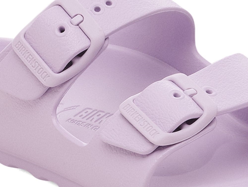 EVA (ethylvinylacetat) er en fleksibel og stødabsorberende plast, der normalt anvendes i såler. I denne udgave fra Birkenstock er hele sandalen støbt i EVA, hvilket gør den vandtæt, blød at gå i og nem at rengøre. Perfekt til strand, bad og sommerbrug.