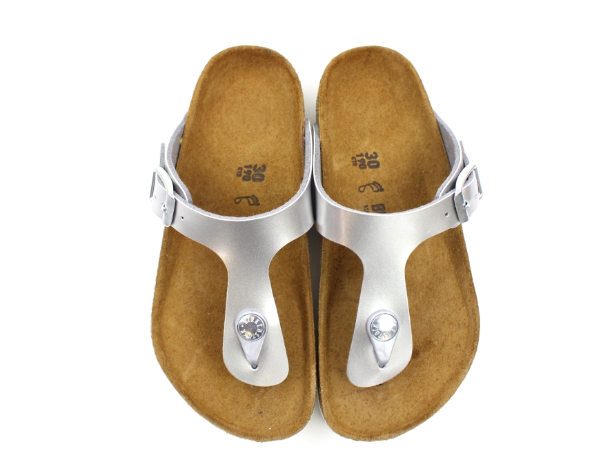 Mere information om Birkenstock Gizeh sandal electric metallic silver med spænde (medium-bred)