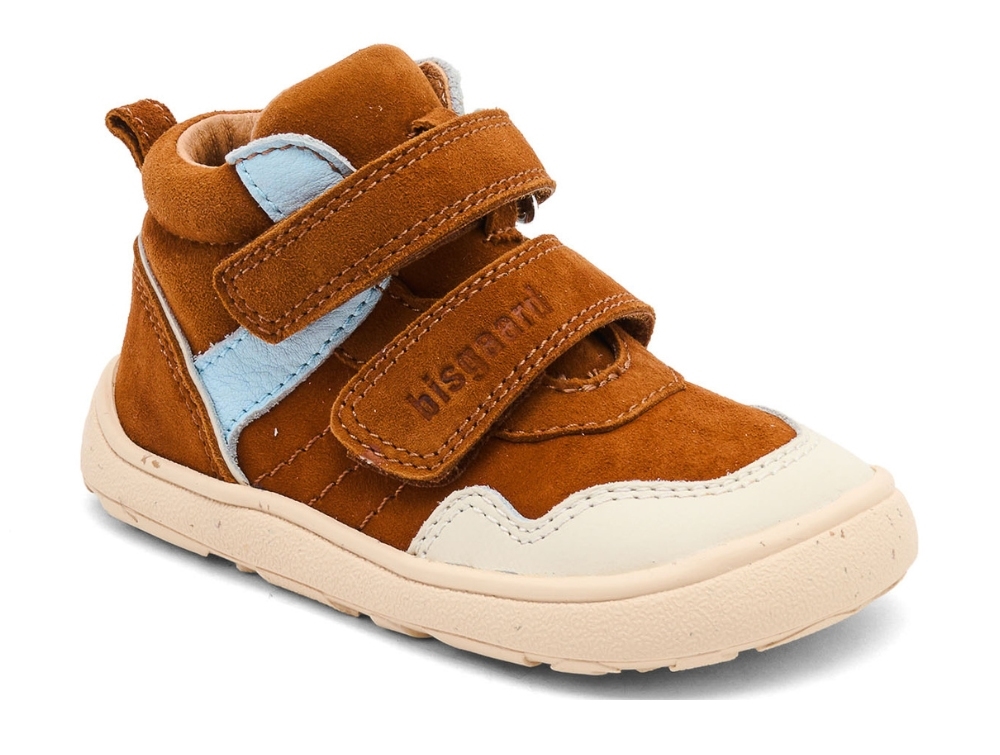 Sko i brun nuance med lyse kontrastdetaljer fra Bisgaard. Becky er en let sko designet til små, aktive fødder, hvor bevægelsesfrihed og komfort er i fokus. Kombinationen af ruskind og glat læder giver et flot udtryk, mens den fleksible konstruktion følger barnets naturlige bevægelser.