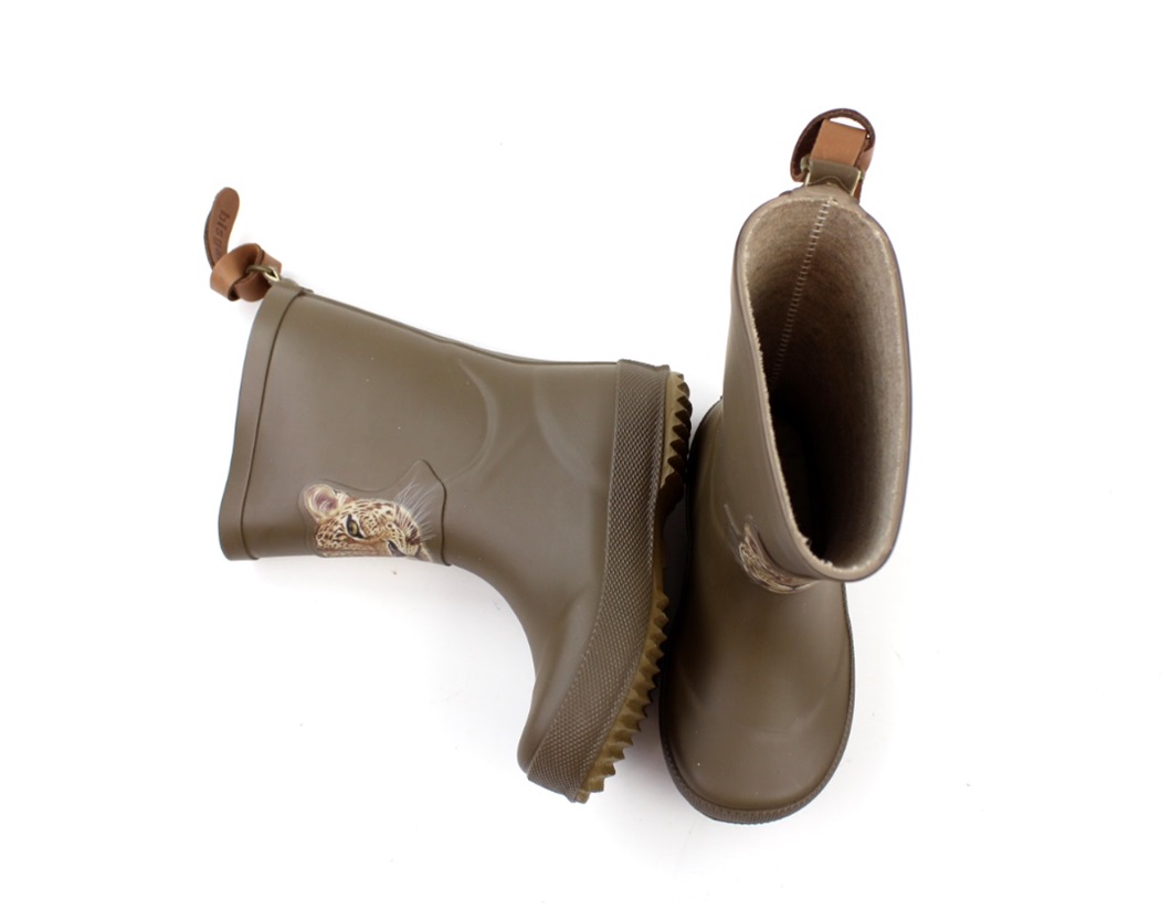 Brune gummistøvler med jaguar-print fra Bisgaard.