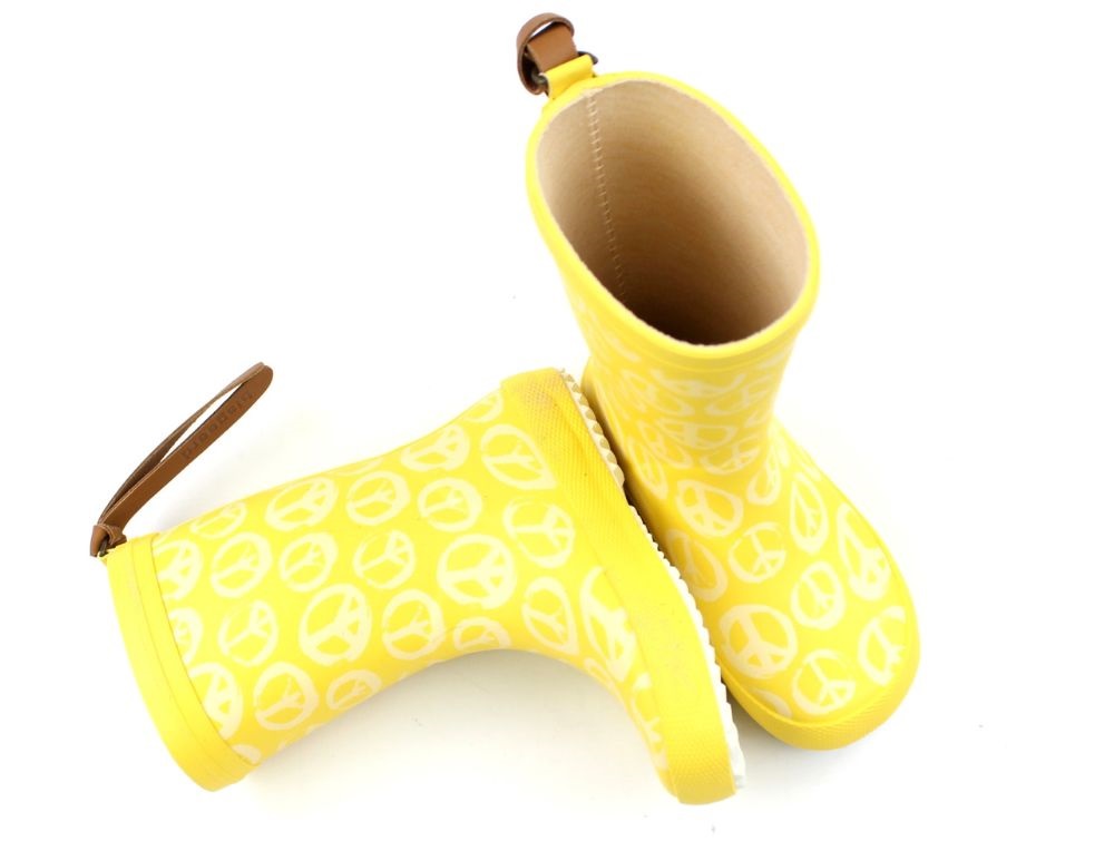 Gummistøvler i gul med fredstegn (peace on earth sunny) fra Bisgaard.