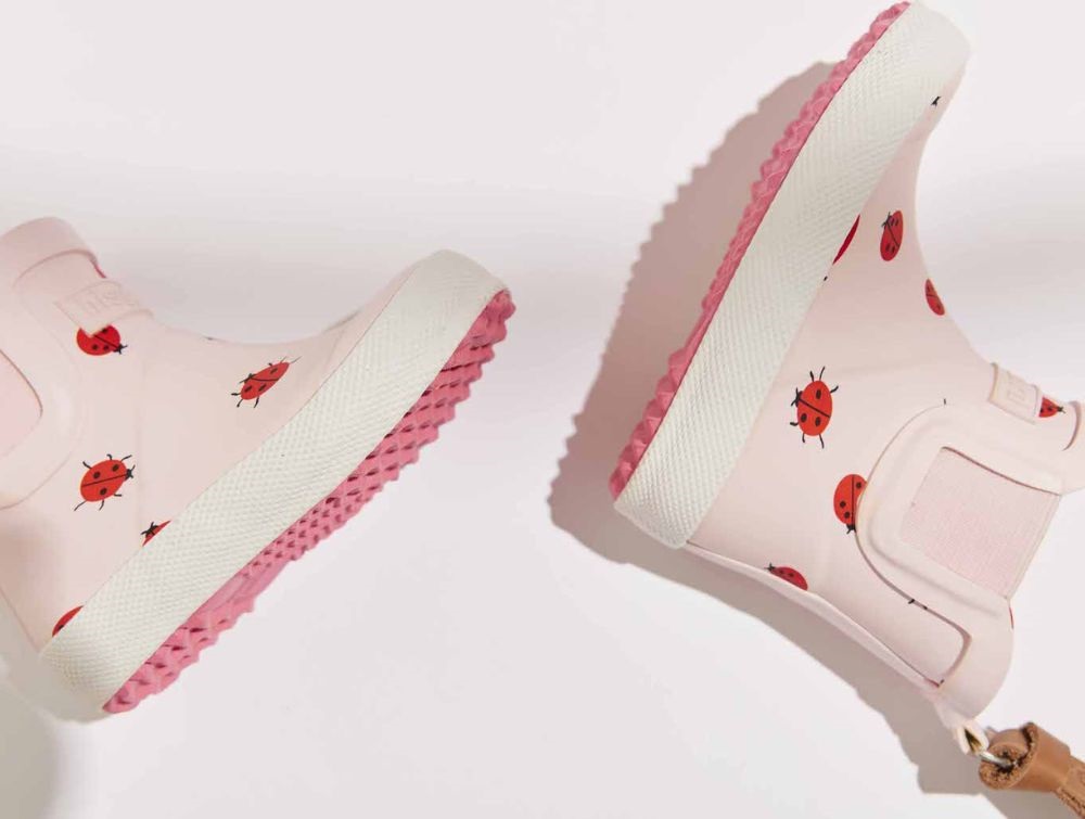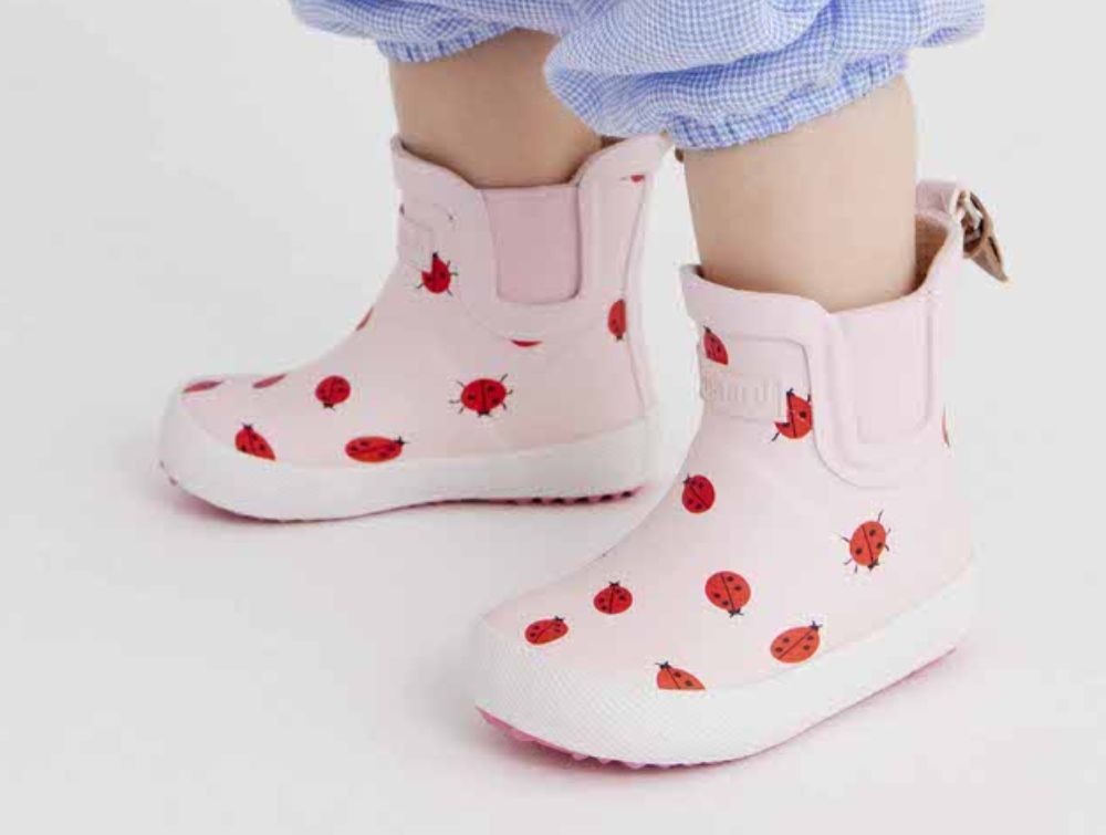 Korte gummistøvler i rosa med mariehøneprint fra Bisgaard.