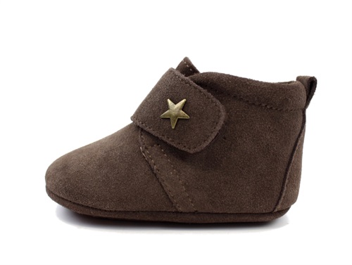 Mørkebrune ruskindshjemmesko fra Bisgaard med lille metalstjerne.