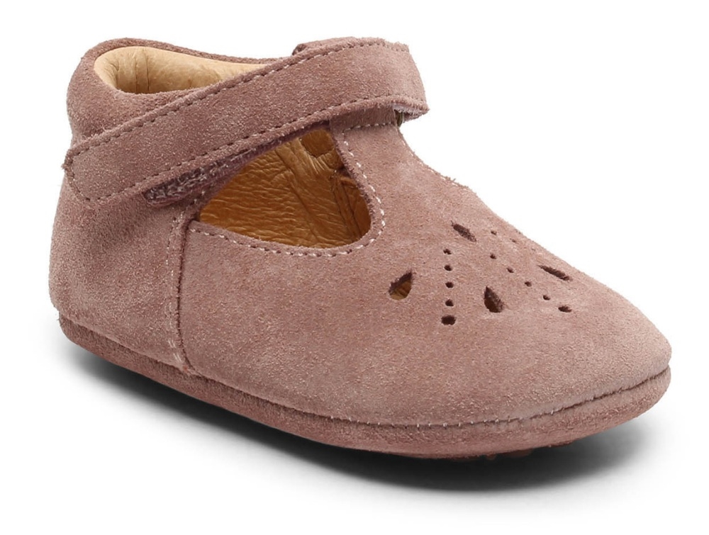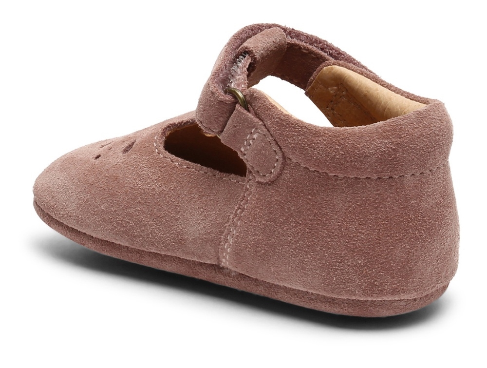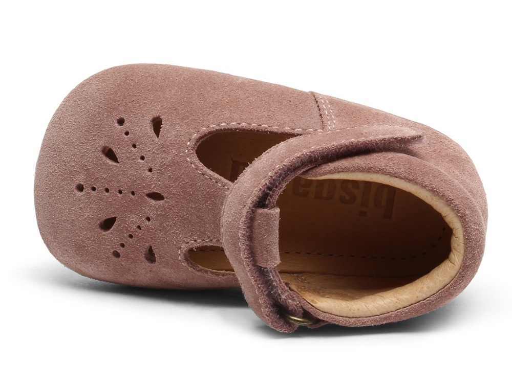 Bisgaard bloom hjemmesko i rosefarvet ruskind med velcrorem